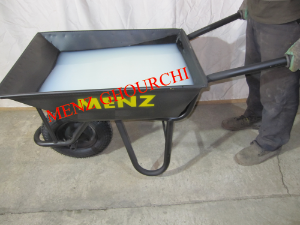 فرغون صنعتی برند MENZ: دارای سینی ورق فولادی بضخامت 2 میل واقعی، لبه های دوبله شده سینی که حاوی میلگرد نمره 12 در داخل و سپس نورد شده با نقطه جوش اتصال قوی و دائم گردیده است.